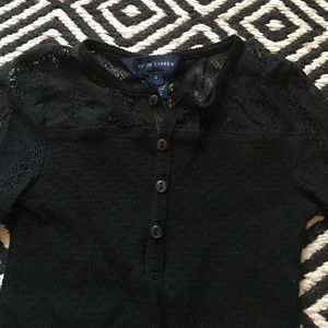 Sophisticated and cute RL girls Henley Top with black lace sleeves and shoulders. Only worn once!