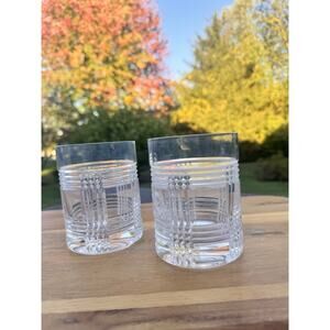 Ralph Lauren Glen Plaid Crystal Old Fashioned Whiskey Glass 4 1/8" ~set of 2
