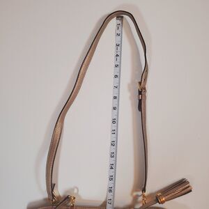 Features: Double handles, zipper closure, detachable shoulder strap, tassel detail