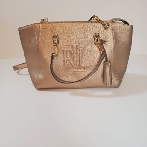 Ralph Lauren Gold Leather Bag Double Handle Medium Satchel Shoulder Strap