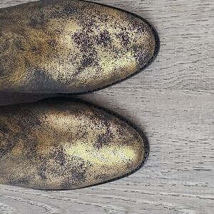 Ralph Lauren Gold Metallic Ankle Boots Heeled Pointed Toe Booties, Size 9.5