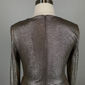Ralph Lauren Gold Metallic Long Sleeve Cocktail Dress Size 14 V-Neck Sheath