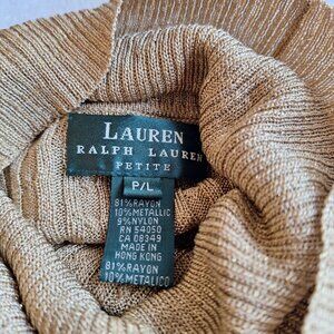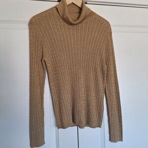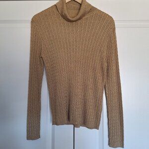Ralph Lauren Gold Stretch Cableknit Turtleneck Sweater Preppy Fall Festive Formal Layer.