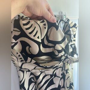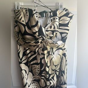 Ralph Lauren Gold and Black Tropical Print 100% Silk Strapless Satin Dress Sz 14