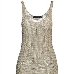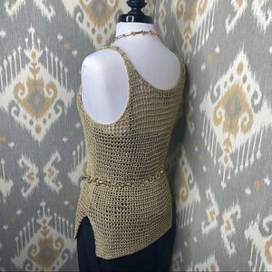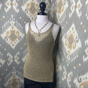 Ralph Lauren Gold Lame Open Hand Knit Mesh Sleeveless Scoop-neck Tank Sweater