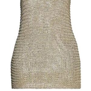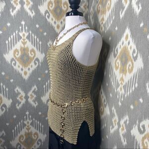 Luxe, Grecian gilded effect, gold lamé, open weave, mesh knit, scoop neck, sleeveless, tank sweater.