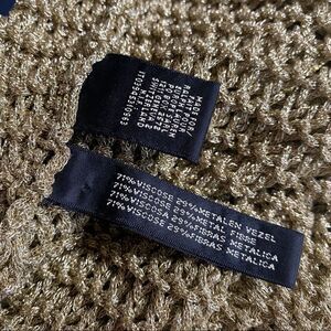 Beautiful and luxe, lustrous but subtly reflective soft gold knit fabric, of 71% viscose, 29% metallic lamé fibers, that are feathery, with a lightweight hand.