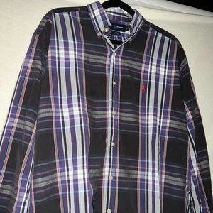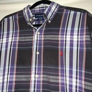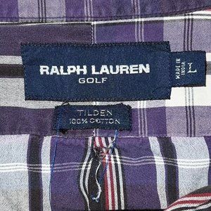 Ralph Lauren Golf Button Down Shirt Plaid Striped Purple Cotton Tall Men's Large