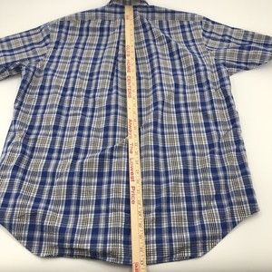 Ralph Lauren Golf Button Front Shirt Blake Large Blue White Plaid Short Sleeves Collar