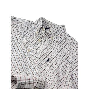 Ralph Lauren Golf Flannel Cotton Button Down LS Shirt White, Blue Plaid Size L
