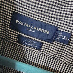Ralph Lauren Golf Tilden Button Up Long Sleeve Shirt Black & White Check XXL EUC