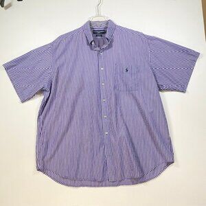 Ralph Lauren Golf XXL Purple Striped Cotton TILDEN Button Up Short Sleeve Shirt