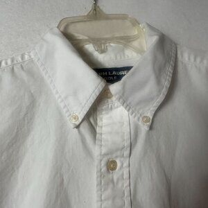 Ralph Lauren Golf shirt sz mens L white pocket crest Tilden cotton button up