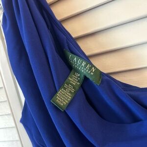 This is a one-shoulder Ralph Lauren formal gown. It is a size 10 petite. It was worn once.