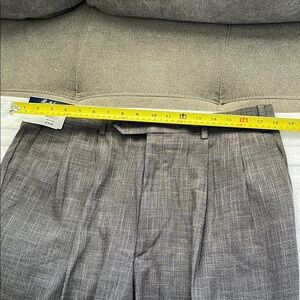 These Ralph Lauren dress pants in a sophisticated gray hue feature a classic straight-leg design with pressed creases for a polished look. Crafted from a high-quality wool-blend fabric, they offer a subtle texture that enhances their formal appeal. Ideal for business or formal occasions, these pants are a timeless addition to any wardrobe.