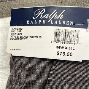 These Ralph Lauren dress pants in a sophisticated gray hue feature a classic straight-leg design with pressed creases for a polished look. Crafted from a high-quality wool-blend fabric, they offer a subtle texture that enhances their formal appeal. Ideal for business or formal occasions, these pants are a timeless addition to any wardrobe.