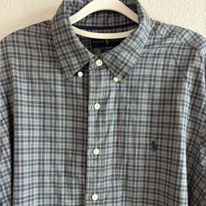 Ralph Lauren Gray Plaid Long Sleeve Button Down Shirt With Logo Men XL