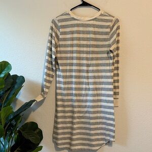 Chic gray and cream striped sleep shirt. Features a V-neck design. Comfy and cool for a nice nights sleep. Size small.
