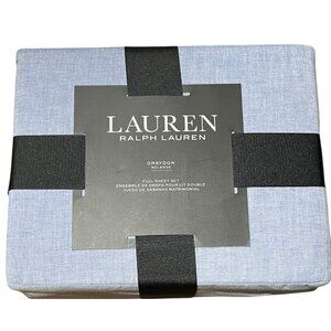 Ralph Lauren Graydon Light Blue 4 PC Full Sheet Set Flat Fitted Pillowcases New