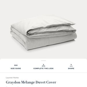 Elevate your bedroom with the Ralph Lauren Home Graydon Mélange King-size Duvet Cover AND two King Pillow Shams. Soft and stylish in light gray (fog) color.