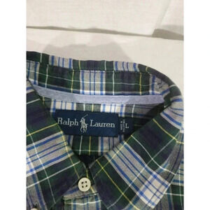 Ralph Lauren Green Blue Madras Cotton Men's Size L Plaid Button Up Shirt
