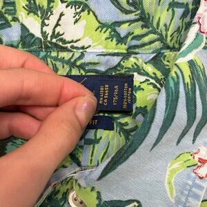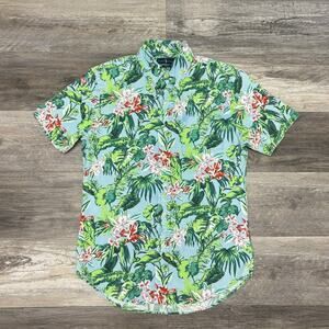 Ralph Lauren Green Blue Mens M Slim Fit Short Sleeve Button Down Hawaiian Shirt