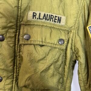 Ralph Lauren Green Jacket RRL Polo Quilted Military Utility USA Flag Patch
