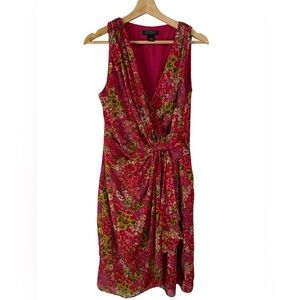 Ralph Lauren Green Label Women’s Wrap Dress Pink Red & Green Floral Print Size 8