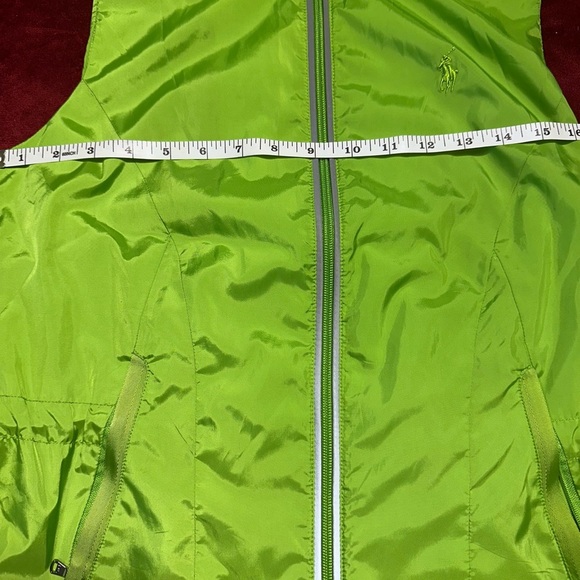 This Ralph Lauren vest in a striking green hue is crafted for outdoor enthusiasts, offering a water-resistant finish and a fitted silhouette for optimal comfort and style.