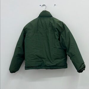 Stylish vintage green puffer jacket. Features toggle closures. Two front pockets. Perfect for cold weather- real down.