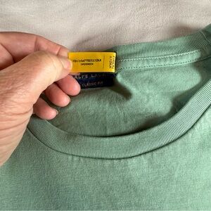 Stylish green tee with bold plaid 'POLO' logo. Perfect for casual wear.