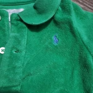 Ralph Lauren Green Terry Cloth Onesie with matching Peacock Leggings Size 9mo