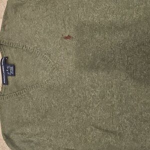 Ralph Lauren Green V-Neck Merino Sweater with Ribbed Cuffs
