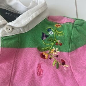Ralph Lauren Green and Pink Striped Polo Dress 18m girls cotton