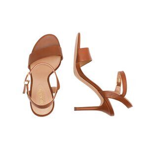 Designed with a leg-elongating 90-mm heel and a chic ankle strap, Ralph Lauren's Gwen sandal is crafted with supple burnished leather for a timeless wardrobe staple. A padded insole ensures all-day comfort and style.