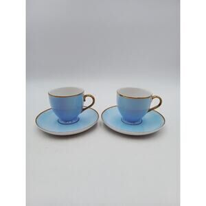 Ralph Lauren Hampton’s Tea Sky Blue with Gold Trim CUPS & SAUCERS Set Of 2 Vtg