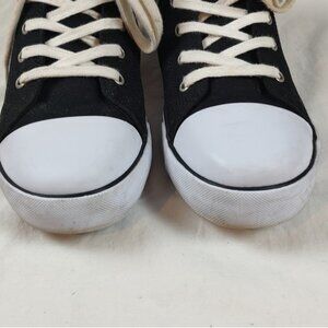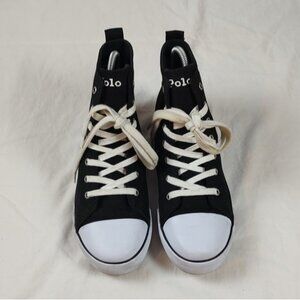 Polo Ralph Lauren Hamptyn black and white canvas high top sneakers with embroidered Polo Bear.