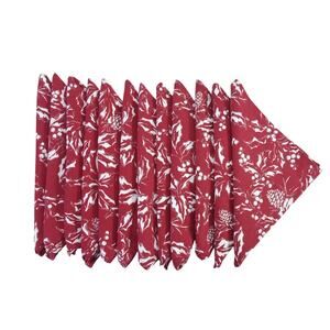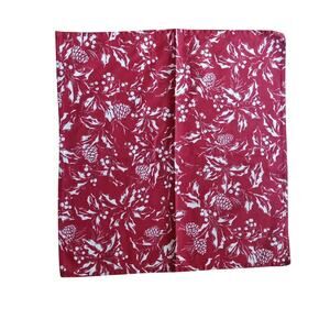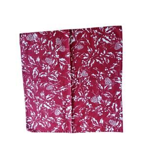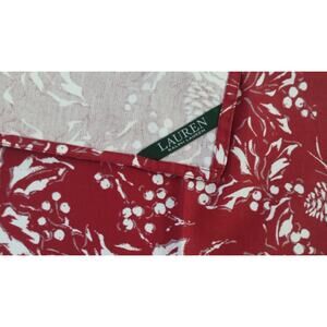 Set of 12 Ralph Lauren Holiday Winter Dinner Napkins Bowen Pinecones Red Silver White. 20" x 20". The design of the napkin is "Bowen". The napkins are a deep red/burgundy and white with holly, berries, leaves and pine cones with silver accents. In very good pre-owned condition.