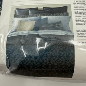 Ralph Lauren Home King Duvet Cover 108 x 96 Francois NWT Navy Blue Cotton $425
