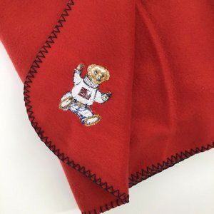 Ralph Lauren Home Red Fleece Throw Blanket 50X68 Embroidered Polo Teddy Bear 90s