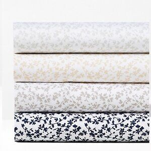 Part of Lauren Home’s signature Spencer bedding collection, this cotton sateen sheeting has a thread count of 300 and features a classic floral print.