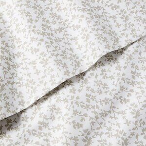 Part of Lauren Home’s signature Spencer bedding collection, this cotton sateen sheeting has a thread count of 300 and features a classic floral print.