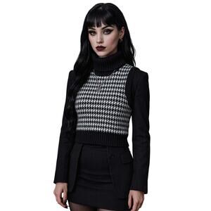 Black and white houndstooth knit turtleneck vest from Lauren Ralph Lauren in size Small. Material is a soft and luxurious blend of merino wool, cashmere, blend.