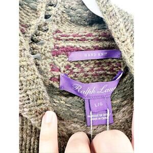Ralph Lauren Intarsia-Knit Mockneck Sweater Wool Cashmere Hand Knit Sweater L