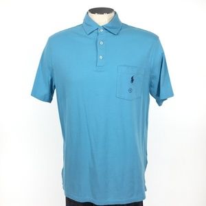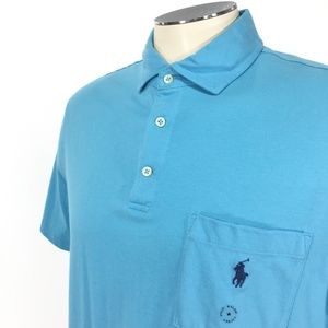 Ralph Lauren Interlock Polo Shirt Blue Dark Blue Pony Pocket Mens