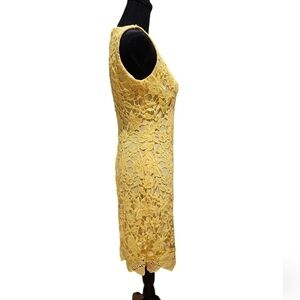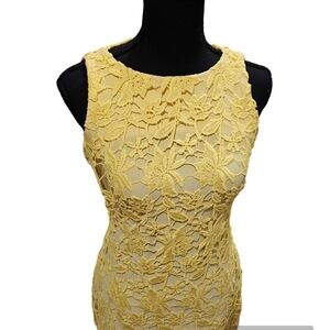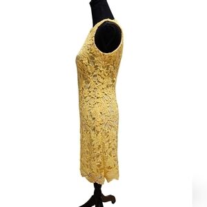 Ralph Lauren Island Yellow Crochet Lace Floral Formal Midi Sheath Dress Size 0