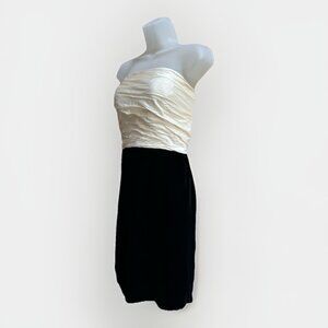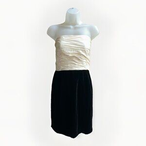 Ralph Lauren Ivory Silk Black Velvet Strapless Cocktail Dress Size 6 Festive