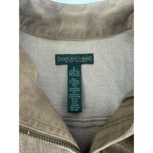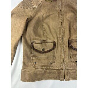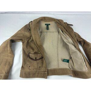 Ralph Lauren Jacket Women 6 Olive Brown Cargo Moto Utility Canvas Brown Leather