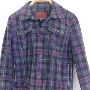 Unique plaid pattern jean jacket. Denim