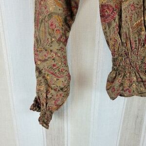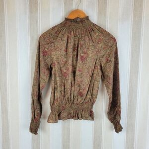 Excellent condition, high neckline, button front, long sleeves, super lightweight, paisley print.